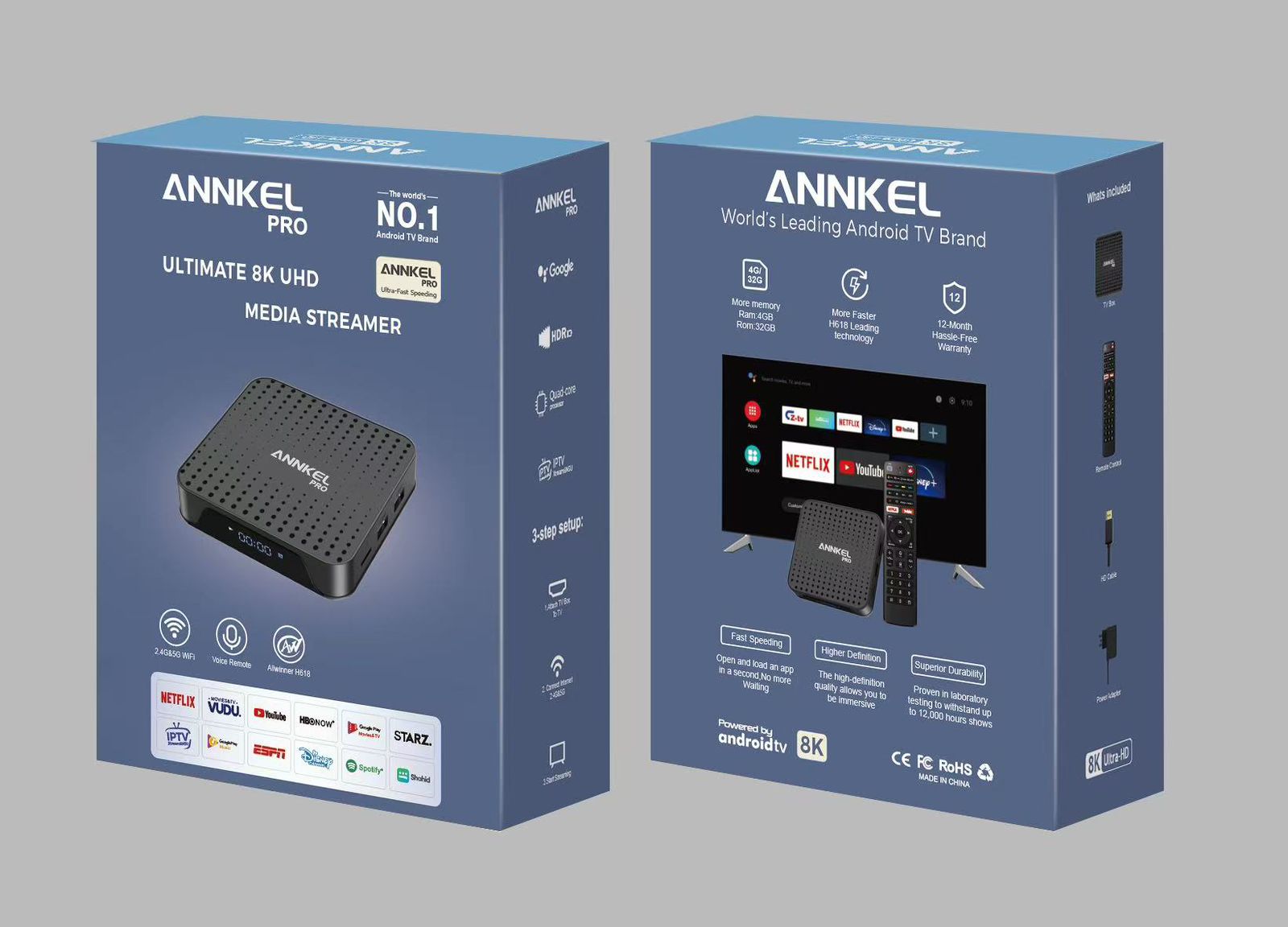 Upgrade to PRO Performance! No Lag, More Storage. The ANNKEL PRO is designed for power users. With upgraded 4GB RAM and 32GB Storage, this box loads apps instantly and runs smoother than standard devices. Perfect for heavy streaming, gaming, and watching high-bitrate 8K content without freezing.
